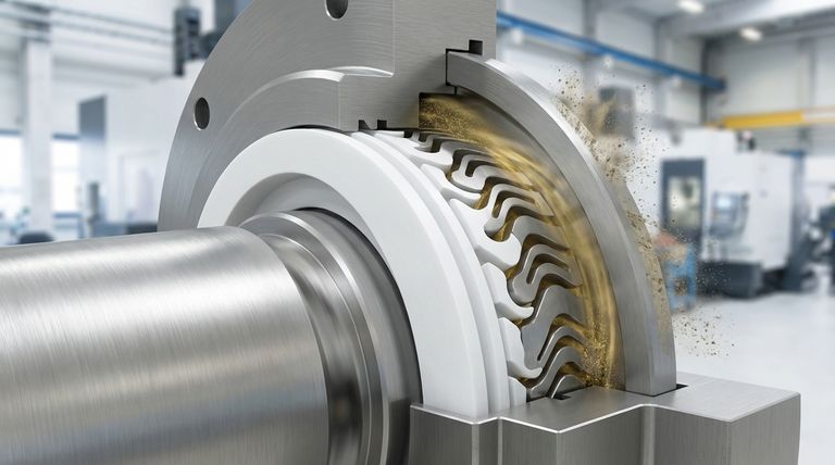 其核心原理是,迷宫式 PTFE 密封件通过创建一个复杂的非接触式路径来工作,而不是依赖直接的物理屏障。 PTFE(聚四氟乙烯)环与设备的轴一起旋转,其复杂的沟槽与密封体中的固定沟槽联锁。这种布置形成了一条困难的、迷宫般的旅程——即“迷宫”——它利用流体动力学和离心力来容纳润滑剂并阻挡污染物,而不会使任何部件与轴发生磨损。