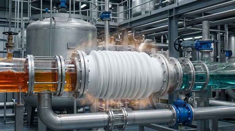 选择PTFE作为膨胀节材料,并非因为它具有某一项突出特性,而是因为它结合了化学惰性和物理回弹性,解决了现代管道系统中处理高温腐蚀性介质而不发生故障的最严苛挑战。